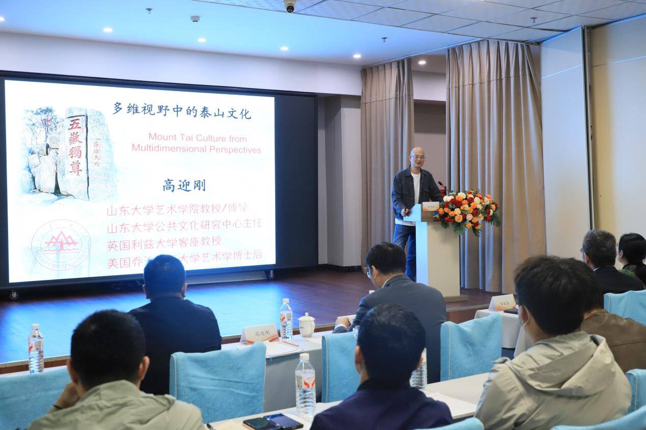 山东大学公共文化研究中心主任高迎刚教授带来《多维度视野下的泰山文化》讲座。他以“泰山为何是中华第一圣山”为切入点,从四个维度展开深度解读:地理维度上,泰山作为黄河流域的生态屏障,见证了华夏文明的起源与发展;历史维度上,自秦始皇至清乾隆,历代帝王在此举行封禅大典,留下无数珍贵的历史印记;文化维度上,孔子“登泰山而小天下”的慨叹、杜甫“会当凌绝顶”的诗句,让泰山成为文人墨客的精神图腾;精神维度上,“泰山石敢当”的传说、“重于泰山”的价值观,早已融入中华民族的文化基因,成为代代相传的中华民族的精神符号。