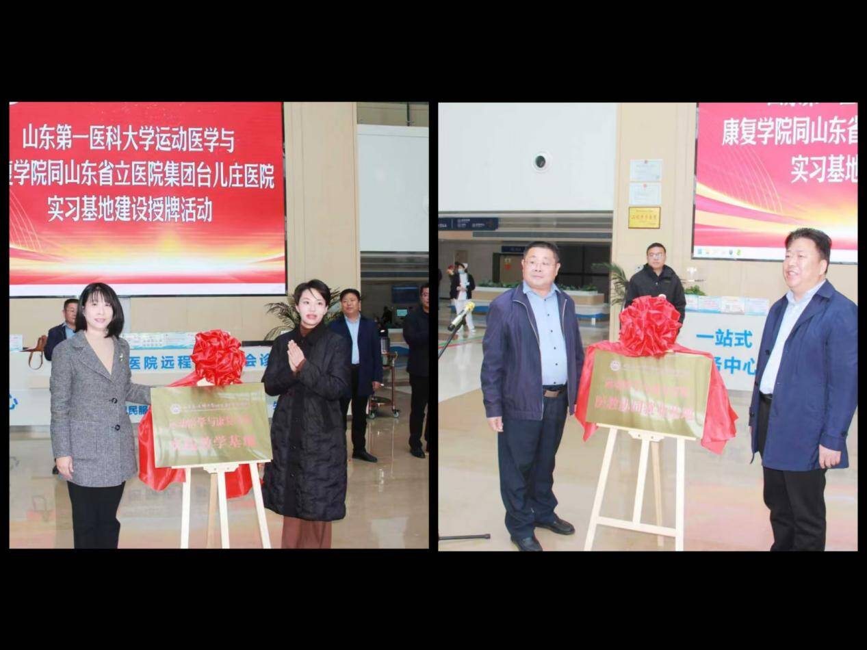 12月9日,运动医学与康复学院与山东省立医院集团台儿庄医院实习就业基地建设活动在台儿庄医院门诊大厅隆重举行。台儿庄区政府党组成员、副区长付晓娟,区卫健局党组书记、局长周长宏,山东省立医院集团台儿庄医院党委书记王建斌,学院党委书记孙建翠,学院党委委员、副院长程厚文,医院全体中层干部出席活动。活动由山东省立医院集团台儿庄医院院长王允山主持。