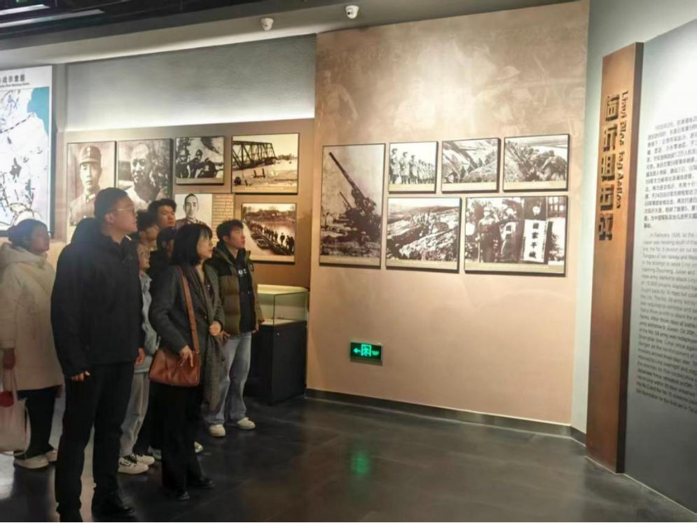 在台儿庄大战纪念馆,学生第一党支部书记刘志远带领党员学生们驻足历史展品前,共同回顾台儿庄大战的烽火岁月。学生党员们通过珍贵的历史照片、实物展品与场景还原,系统了解了台儿庄大战的历史背景、艰苦卓绝的战役过程及重大历史意义。