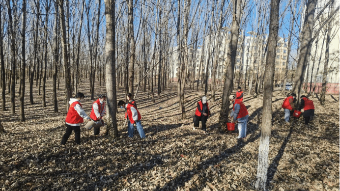 3月12日上午,学院开展“春风十里 绿意萌萌”学雷锋志愿服务活动。青年志愿者向全校师生发出倡议,呼吁大家营造绿色环境,守护绿水青山,创建美丽校园,用实际行动践行雷锋精神和“奉献、友爱、互助、进步”的志愿者精神。随后,志愿者们走进雷锋林,身穿红色马甲,手执扫帚,提着水桶,显得格外朝气蓬勃,他们分工明确,互帮互助,干劲十足,有的给小树浇水,有的除草,有的拾捡垃圾,清理路面,欢声笑语穿透雷锋林。经过同学们的共同努力,雷锋林呈现出一片新绿,面貌焕然一新,同学们的脸上也洋溢出幸福的笑容。